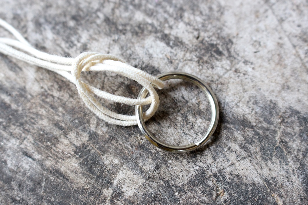 Na środku sznurka zamontuj metalowe kółeczko.