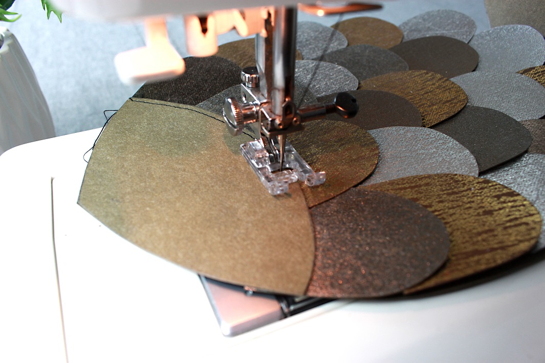 Jeśli chcesz ukryć ścieg łączący przód i tył torebki łusek nie przyszywaj do końca brzegów (zdjęcie krok 4).
