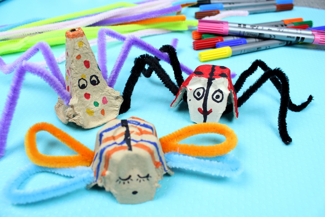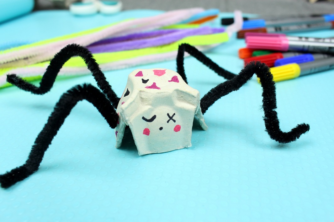 Materiały nie są wyszukane. Jeśli nie masz drucików kreatywnych, odnóża pająka możesz również wykonać z opakowania po jajkach. Zamiast flamastrów możesz użyć farb.