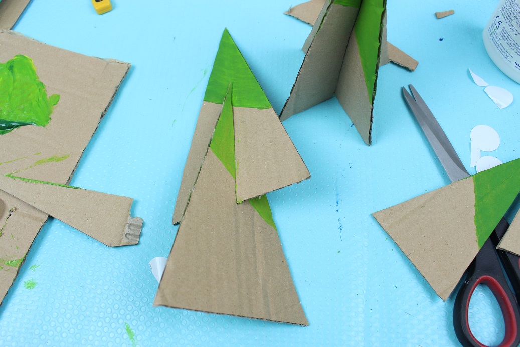 Uchylam rąbka tajemnicy i dziś przedstawiam jedną z moich ulubionych instrukcji zawartych w książeczce, czyli „Kartonowe drzewa”. Dziś skupię się na choinkach.