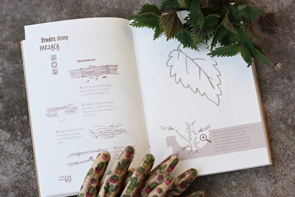 Jest to pozycja wzorująca się na książkach typu „Zniszcz ten dziennik”, czy „Książka pod tytułem”, czyli mocno zadaniowa. Tematyka typowo roślinna. Zamawiając ją spodziewałam się czegoś na kształt typowego zielnika, gdzie po jednej stronie mamy opis rośliny, a po drugiej miejsce na wklejenie samodzielnie wyszukanego okazu. Po rozpakowaniu przesyłki rozczarowałam się, ale jak najbardziej pozytywnie! Opis poszczególnych ziół oczywiście jest, lecz „Zrób ten zielnik” nie ogranicza się do standardowego zbioru ziół. Znajdziemy w nim wiele ciekawych zadań, takich jak kapuściane graffiti, zrobienie strony pachnącej zimą, a nawet instrukcję jak zdenerwować liść…