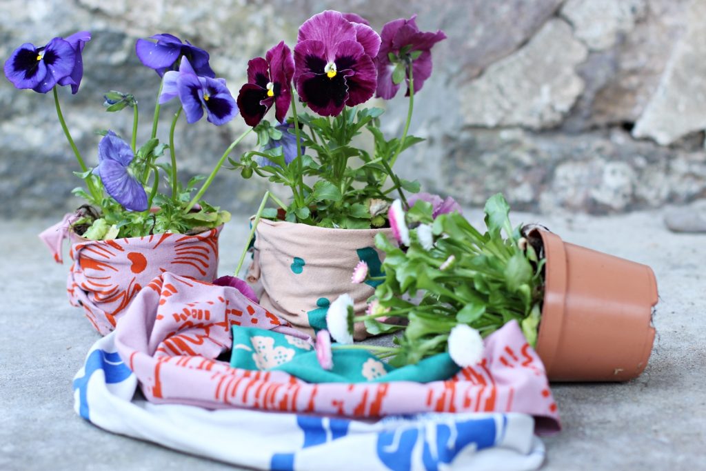 Na koniec szybkie DIY na ciekawą i bardzo szybką osłonkę na doniczkę… jak ją wykonać? Wystarczy, że masz niepotrzebne skrawki kolorowych materiałów. Owiń nimi doniczkę i gotowe!